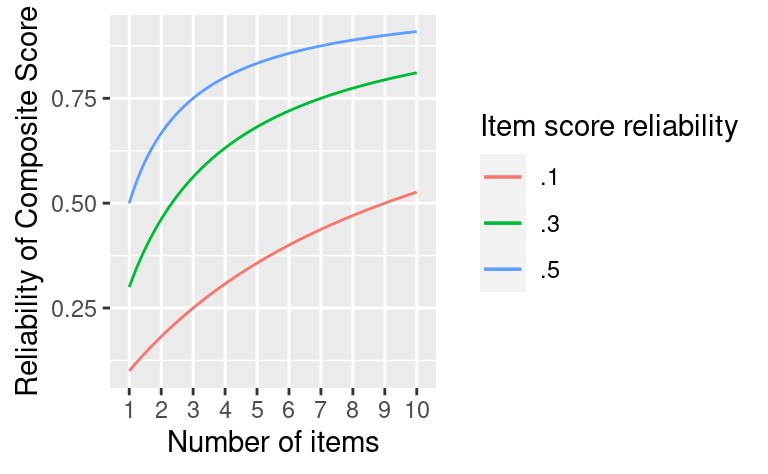 If \(Z\) is the sum/composite of multiple parallel test scores, and the reliability of each component test score is known, the reliability of \(Z\) can be obtained with the above formula.