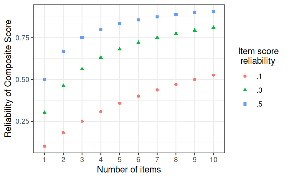 If \(Z\) is the sum/composite of multiple parallel test scores, and the reliability of each component test score is known, the reliability of \(Z\) can be obtained with the above formula.