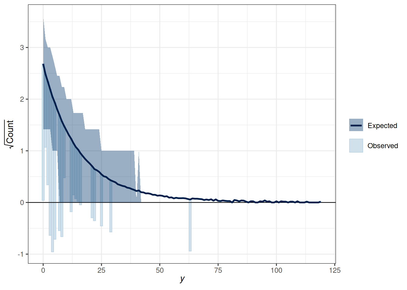 There is also a useful graphical tool, the rootogram (Figure 18.2), for diagnosing count models.