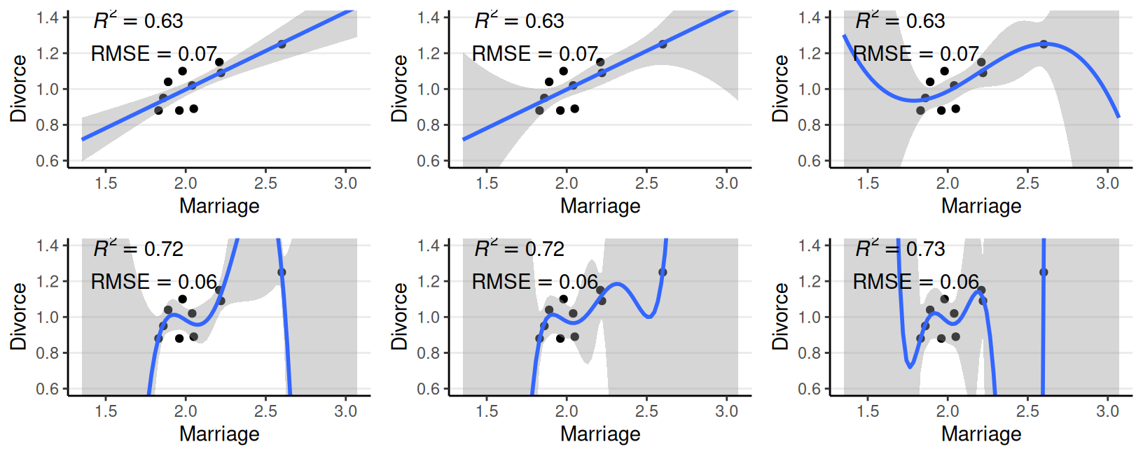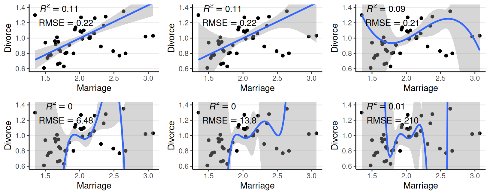 MarriageMarriage, South, Marriage \(\times\) SouthSouth, smoothing spline of Marriage by SouthMarriage, South, MedianAgeMarriage, Marriage \(\times\) South, Marriage \(\times\) MedianAgeMarriage, South \(\times\) MedianAgeMarriage, Marriage \(\times\) South \(\times\) MedianAgeMarriage| M1 | M2 | M3 | M4 | |