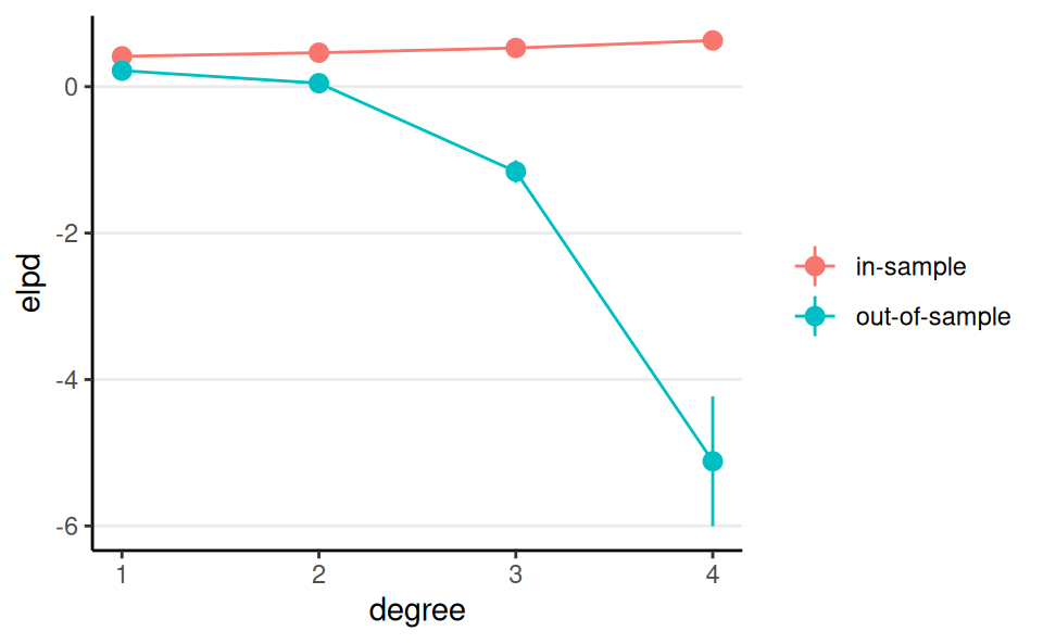 | elpd | “Fit” to sample data | larger |