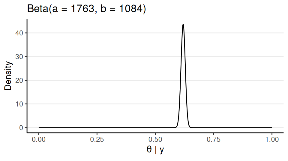 Model equation: \(y_i \sim \text{Bern}(\theta)\) for \(i = 1, 2, \ldots, N\)