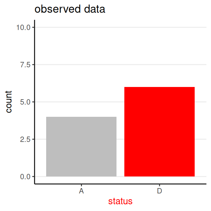 Data: \(y\) = survival status (0 = “A”, 1 = “D”)