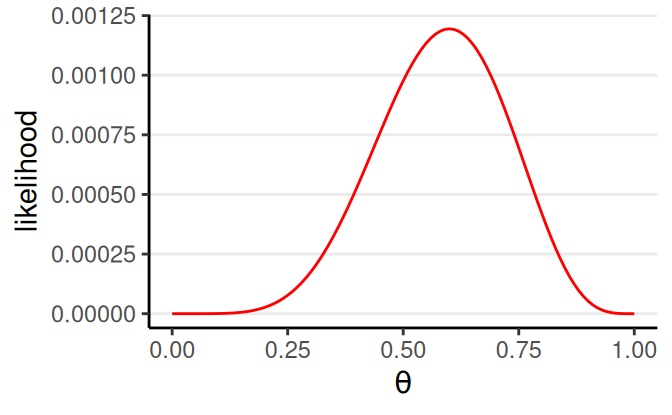 Parameter: \(\theta\) = probability of “D”